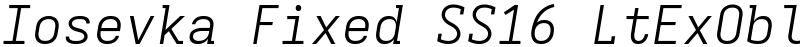 | 字体名称 | Iosevka Fixed SS16 LtExObl |