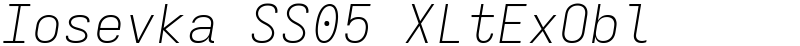 | 字体名称 | Iosevka SS05 XLtExObl |
